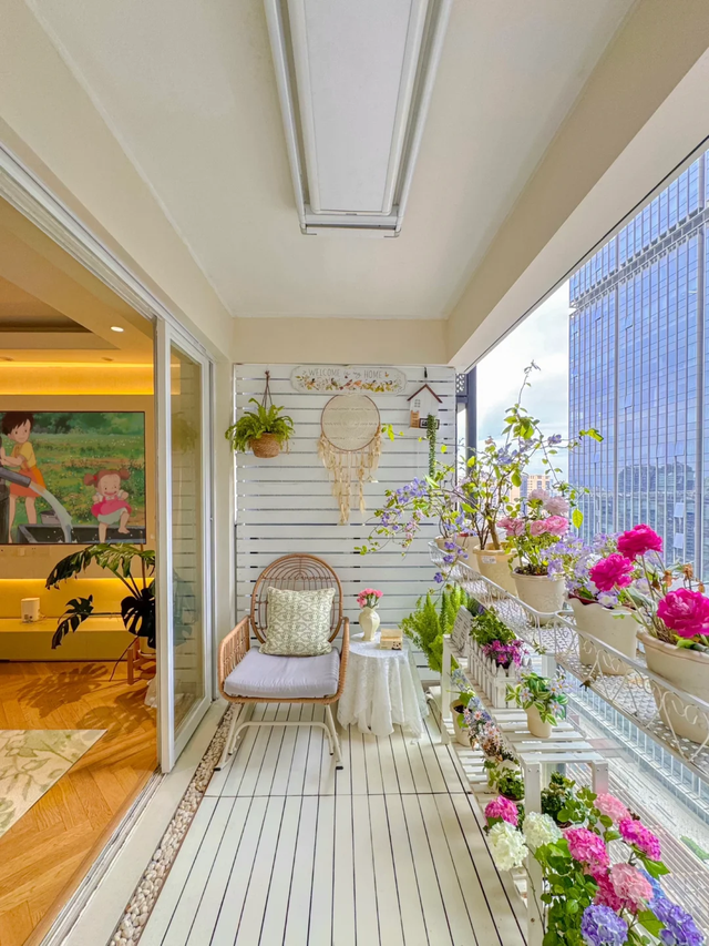 明明家里的阳台不大,却总是堆满杂物,晾衣服、放花盆、堆快递箱……久而久之,连踏出去的欲望都没了。